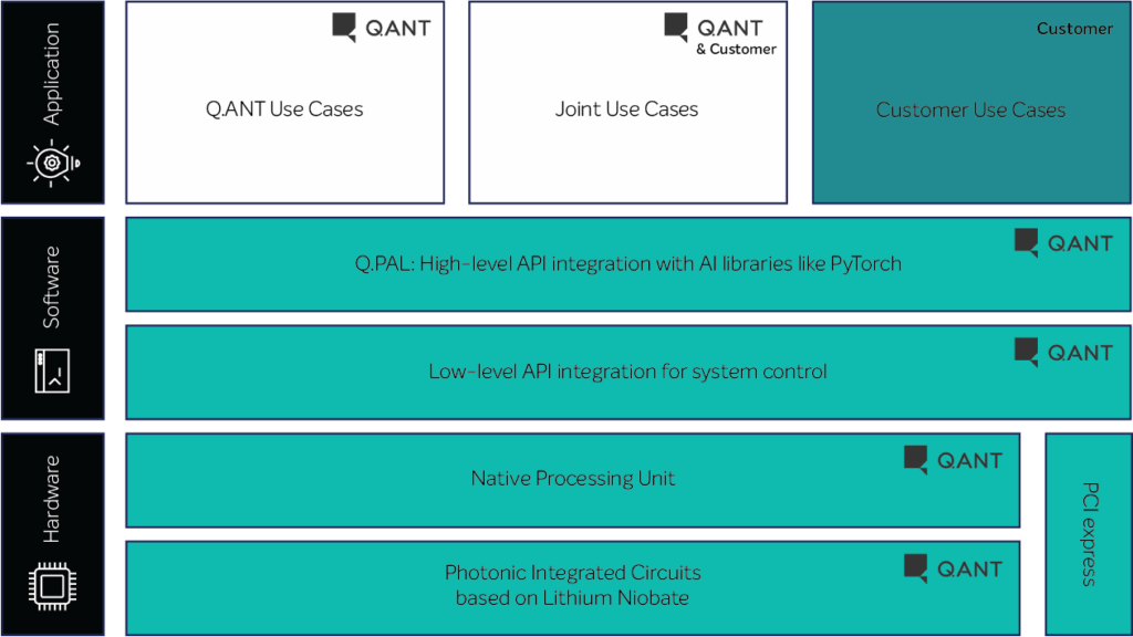 Native Computing von Q.ANT lässt sich nahtlos in die bestehende Rechenlandschaft integrieren. Die Native Processing Unit, das Herzstück des NPS, bietet eine PCIe-Schnittstelle in einem standardmäßigen 19“-Server und macht das System plug-and-play. Auf die NPU kann über eine Software-Schnittstelle mit C/C++ und Python-APIs zugegriffen werden. Sie lässt sich in Zukunft in gängige KI-Frameworks wie PyTorch einbinden. Q.ANT unterstützt Kunden bei der Erstellung individueller Anwendungen und stellt dafür die Q.ANT Photonic Algorithms Library sowie Schulungsressourcen bereit.